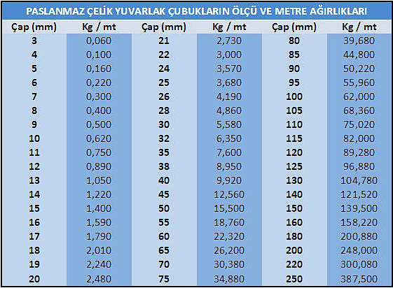 Östenitik AISI 304 304L 316 316L 316Ti, Martensitik AISI 310 standart kalite, 2B mat, BA parlak, 4N ince taşlı yüzey, 4mm ile 35mm arasında çap genişliğine sahip ürünleri tedarik etmekteyiz.